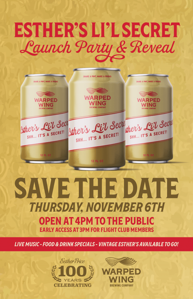 Let the official countdown begin… we’re teaming up once again with the beloved Esther Price Candies crew for the return of Dayton’s *best kept secret* seasonal brew! Join us for Esther’s Li’l Secret Launch Party & Reveal Thursday, November 6th at the Dayton Taproom!