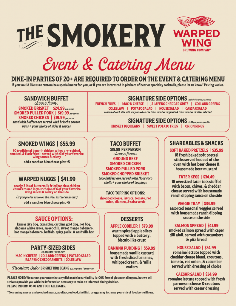 • Buffet options great for large parties