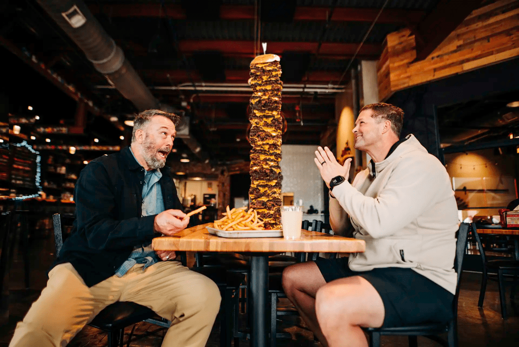 Think you’ve got what it takes to tackle our Mile-High Monster Burger with 100 sizzling smash patties stacked sky-high – plus 3 pounds of fries, 16oz of your favorite beer on tap, & a 16oz cup of our signature Warped Sauce for dippin’ – in just 30 minutes?