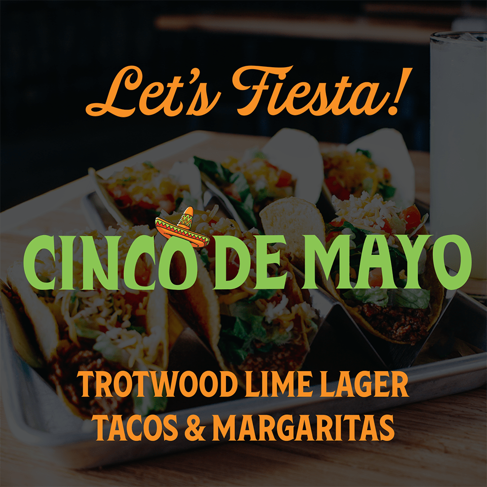 It’s time to fiesta! Celebrate Cinco de Mayo at Warped Wing with the return of Trotwood Lime, our fan-favorite lime lager. Pair it with tacos, margaritas, Mexican mules, & micheladas for the ultimate party. All specials available while supplies last on Cinco de Mayo.