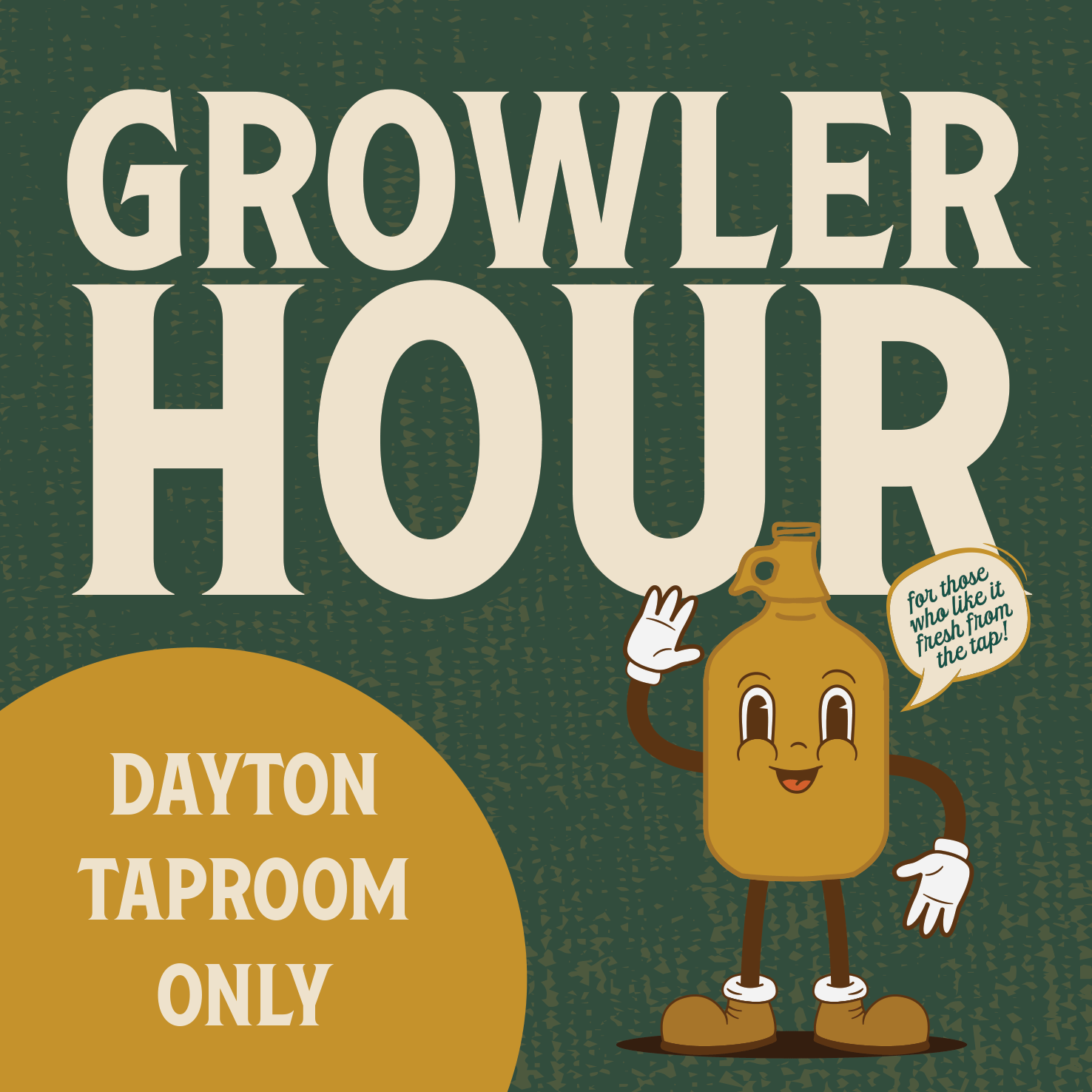 This deal's for those who like it fresh from the tap... Introducing Growler Hour at the Dayton taproom every Monday through Thursday from 4pm-7pm! $10 Growler fills - fresh from the tap & ready to go. Select beers only.